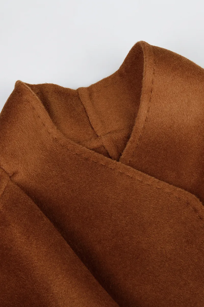 Longueur des manches raglan = longueur normale + (1/2 épaule – 10 cm) Méthode de commande : Taille standard Doublure : Sans doublure poitrine **Caractéristiques :** * **Tissu :** Mélange laine-soie alliant luxe, fonctionnalité et praticité dans un matériau haut de gamme. **Style :** Manteau long pour femme avec col arrondi et manches raglan, dégageant une élégance vintage