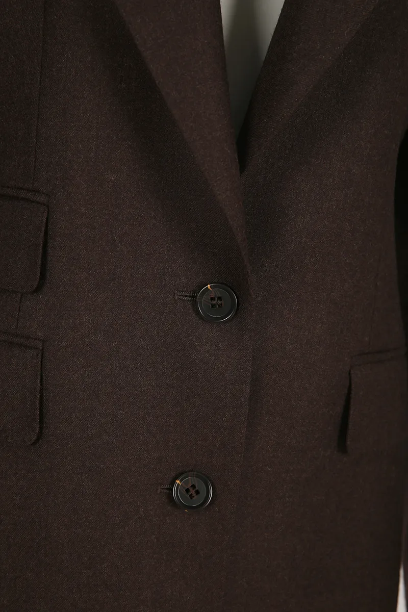 Coupe ajustée et cintrée, avec revers cranté moderne et fermeture à simple boutonnage, conçue pour s’adapter à de nombreuses occasions.